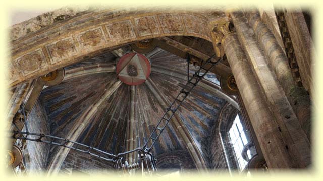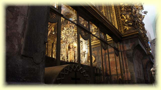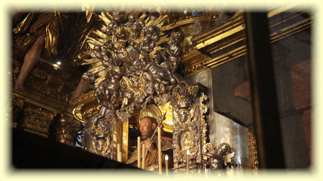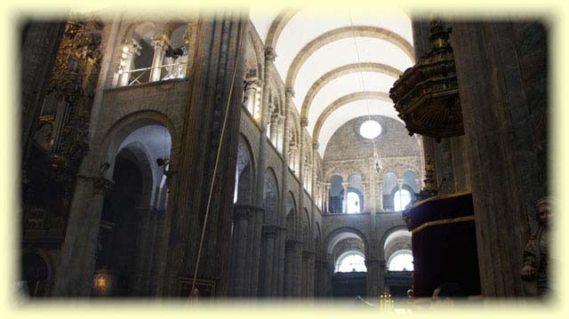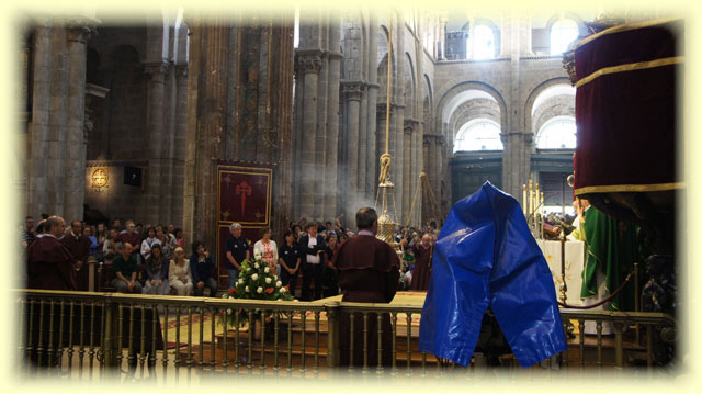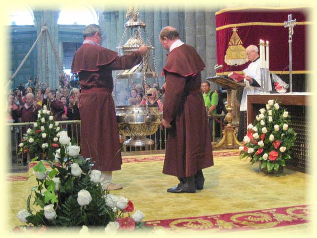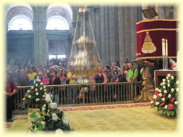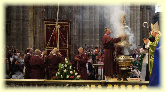 Der Botafumeiro hängt an einem 65 m langen Seil und wird dann von 8 Männer hochgezogen.