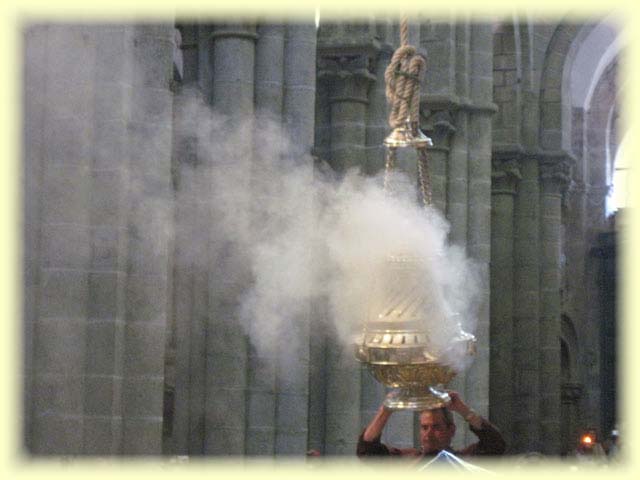 Und wenn der Weihrauch verbraucht ist, nimmt man die Glut heraus und zieht den Weihrauchkessel ein Stück nach oben bis zur nächsten Pilgermesse so um 12 Uhr 30.